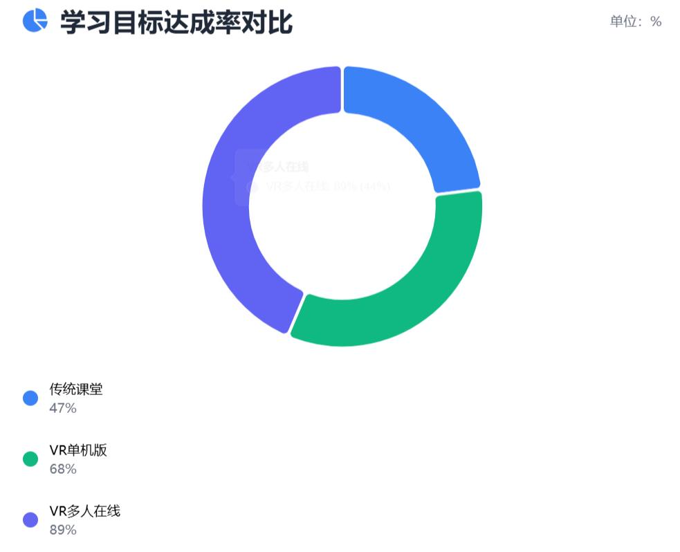 VR多人在线模式结合了沉浸式体验和社交互动,学习目标达成率高达89%。